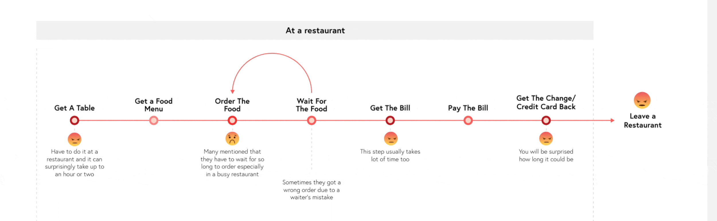 In the research phase, I ran 15 qualitative interviews and field observations in 5 restaurants in order to gain insights