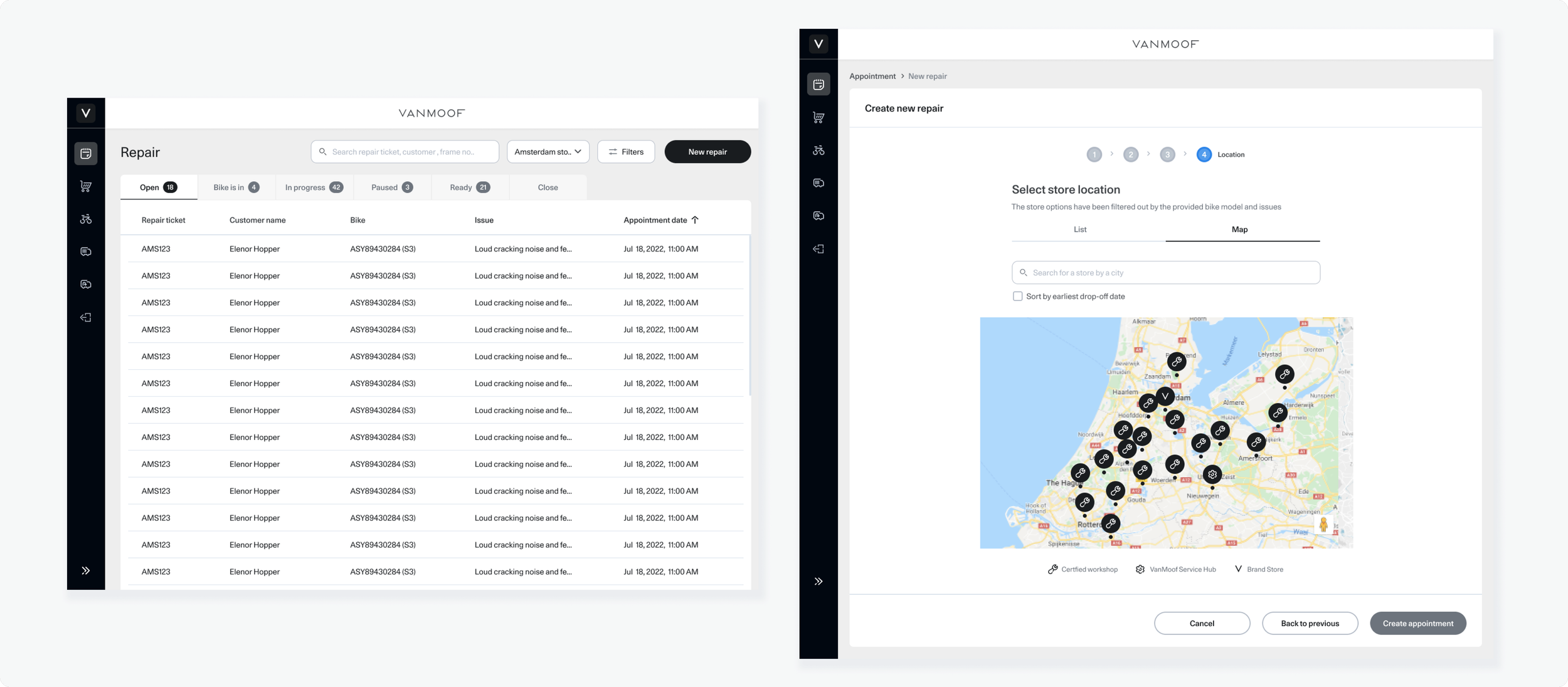 VanMoof is a global company united by one mission: helping people navigate their cities faster, smarter, and in style. As the company grew, so did the number of customer bikes and the demand for repairs. Repair services are a critical part of maintaining customer satisfaction. While POS is the main platform for retail teams to handle sales and service, they still rely on multiple internal tools to manage the repair process, making it time-consuming, complex, and ultimately frustrating for both staff and customers.